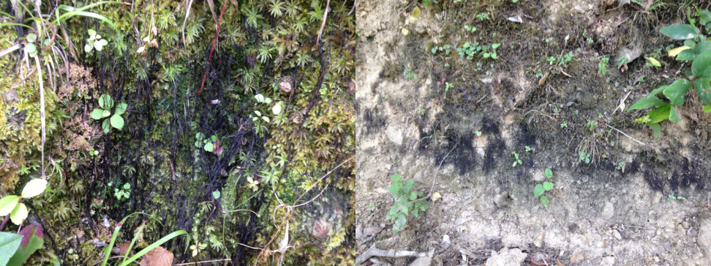 In 2018, I went to look for Isoetes1 (an aquatic relative of ferns) in the Montnegre Natural Parc (Catalonia, NE Spain). But I took the wrong path through the mountain, and ended up going through a nice path by a slope. As I walk, I like to glance sideways at slopes, since they are very interesting places to look for bryophytes and lichens. That day, as I was walking, I noticed that the slope had dark patches, and upon getting near it, it seemed that it was covered in black hairs.
