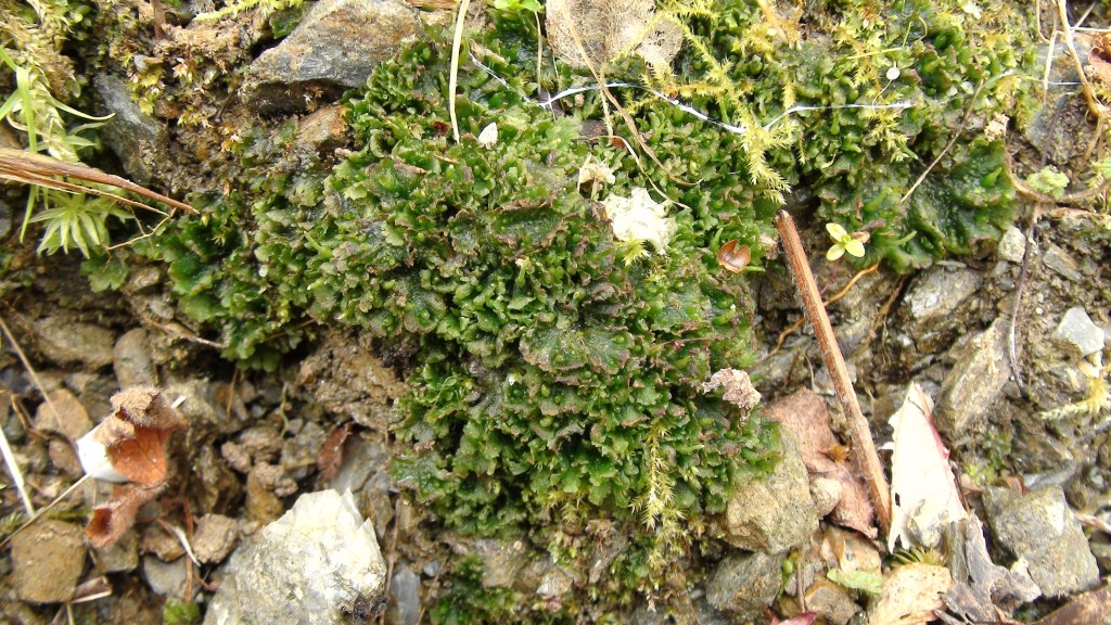 Interestingly, I visited the location in a different month, so I found the hornwort in a different phenology. Instead of the black threads (sporophytes), the surface of the thalli was covered (or should I say punctuated?) by dots. I presume those were the locations of the sexual tissues. I also presume that the specific epithet “punctatus” comes from the punctuated aspect of the dorsal surface of the thallus.
